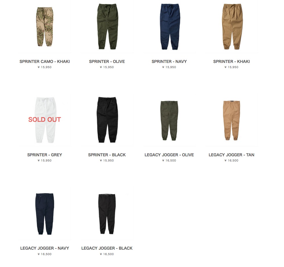 そしてトレンドの火付け役にもなった Legacy Pant や Sprinter Pant もキャリーオーバーし今もなお生産され続けています。