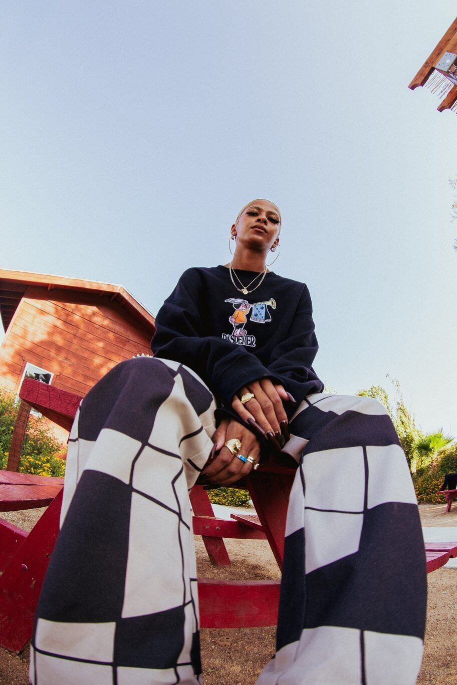 フロントに施されているラッパを吹く少年のグラフィックは細かく刺繍されておりクオリティーの高いスウェットに仕上がっています。