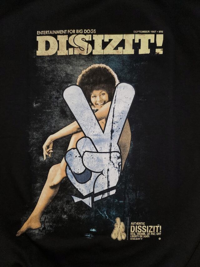 プレイポーイを彷彿とさせるようなロゴとセクシーな被写体をプリントしたグラフィックTシャツです。