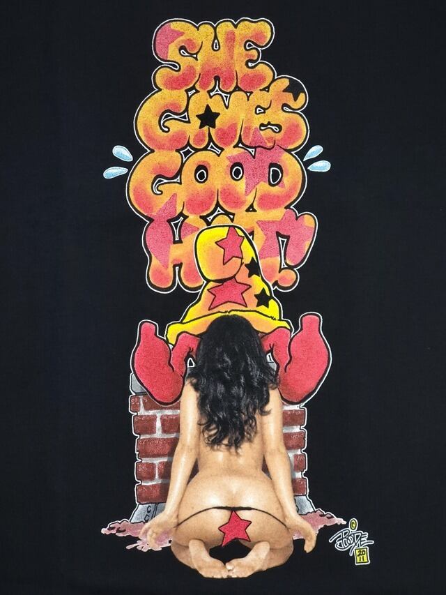 エロさとユーモアを融合したおもしろいアートをプリントしたグラフィックTシャツです。
