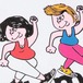 フロントにアスレチックを楽しむ女性、バックには時間や消費カロリーを心配する心拍計のアートワークがプリントされたかわいいTシャツです。